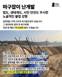 • [성명] 갑천 용신교 상류 하천부지에 무단으로 파크골프장 조성 불법 공사, 하천관리사업소 고발 조치 2025년 11월 24일