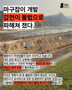 • [성명] 갑천 용신교 상류 하천부지에 무단으로 파크골프장 조성 불법 공사, 하천관리사업소 고발 조치 2025년 11월 24일
