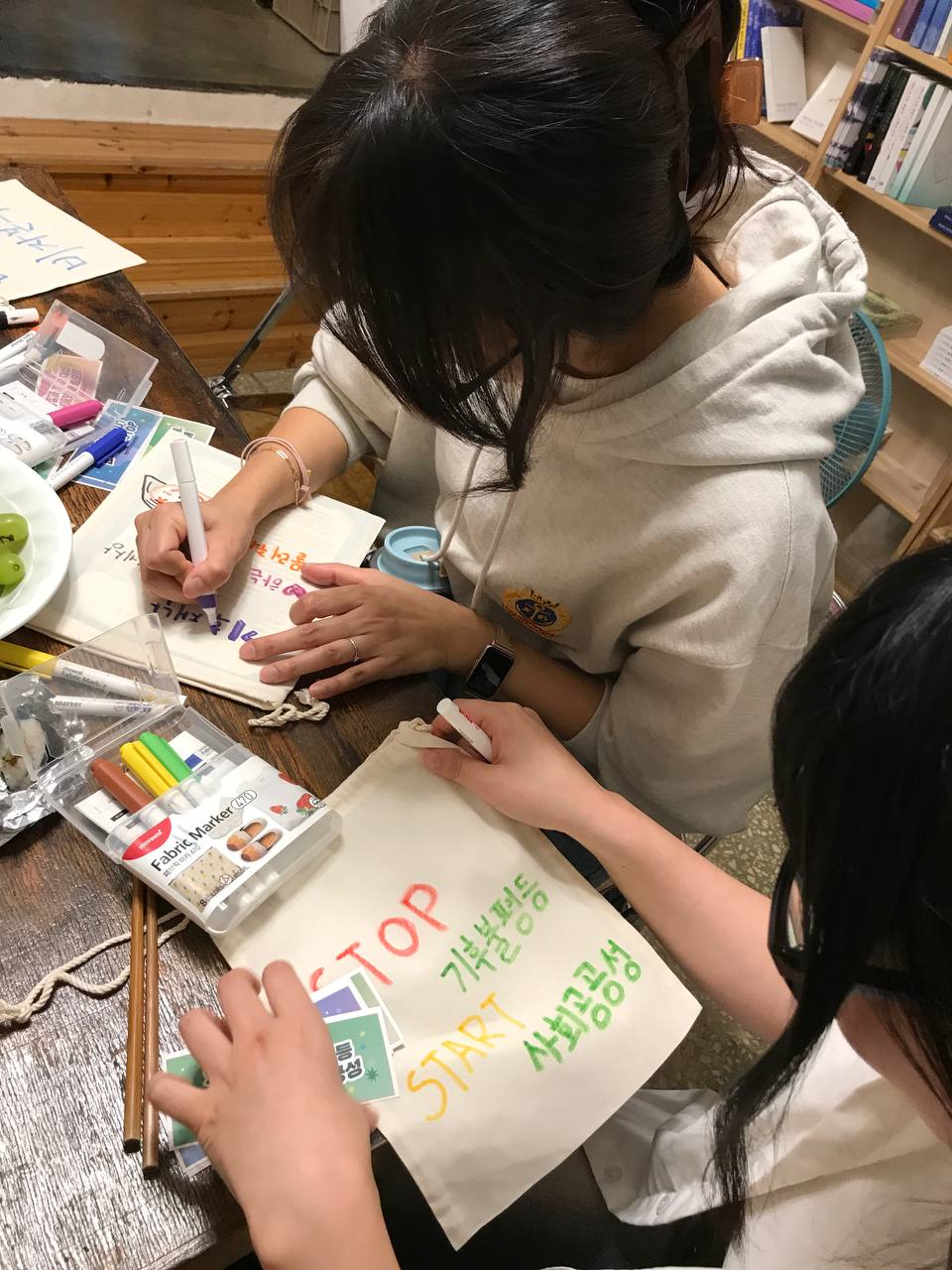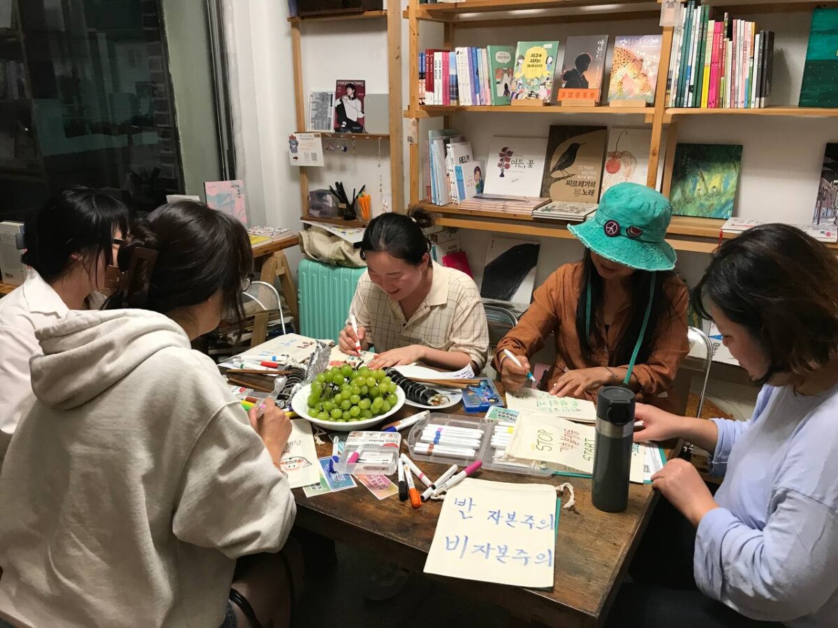 <일상의 녹색>은 매달 1회씩 각 구마다 회원이 운영하는 가게에서 모여 생태 문제를 주제로 내가 일상에서 어떻게 그 문제를 느끼고 있는지 이야기 나누고 있는데요, 기후정의행진이 있는 9월에는 기후정의를 주제로 만났어요.