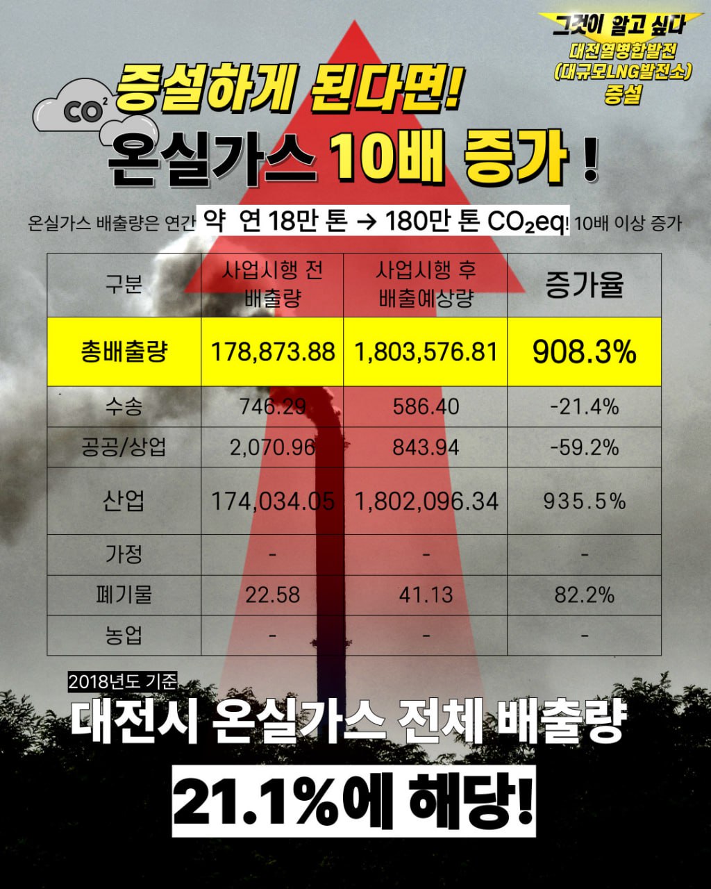 [기자회견] 온실가스, 대기오염 물질 증가하는 대전열병합 증설! 아무런 대책없이 증설 동의한 대전시 규탄한다!