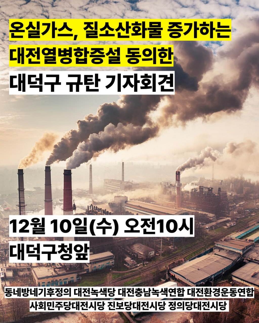 대덕구는 주민 건강권·환경권을 외면한 열병합 추진 동의를 즉각 철회하고 부지승인을 불허해야 합니다.