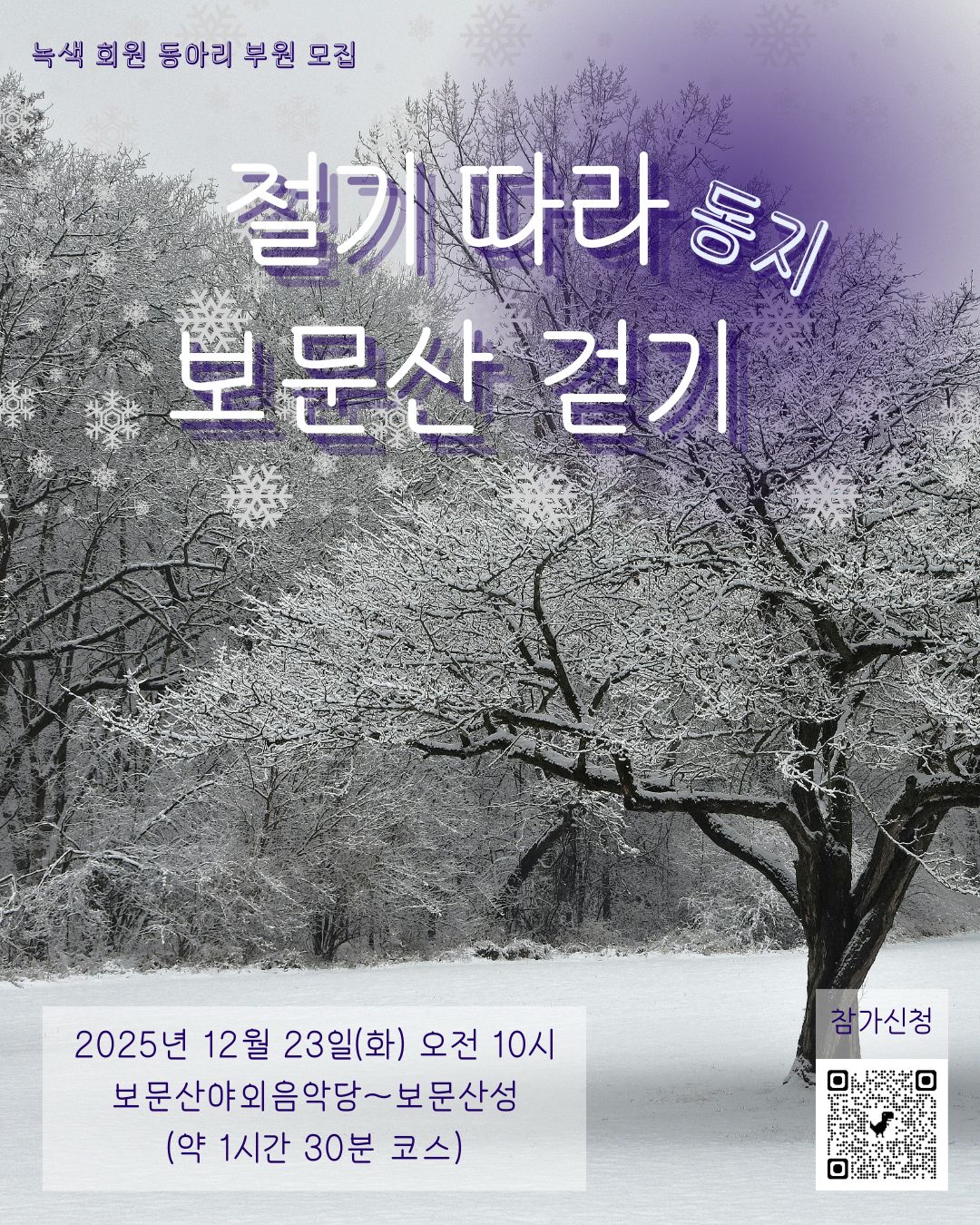 계절의 변화를 느끼며 살아 있는 보문산을 만나는 절기 따라 보문산을 함께 걸을 회원 동아리 부원 모집해요!