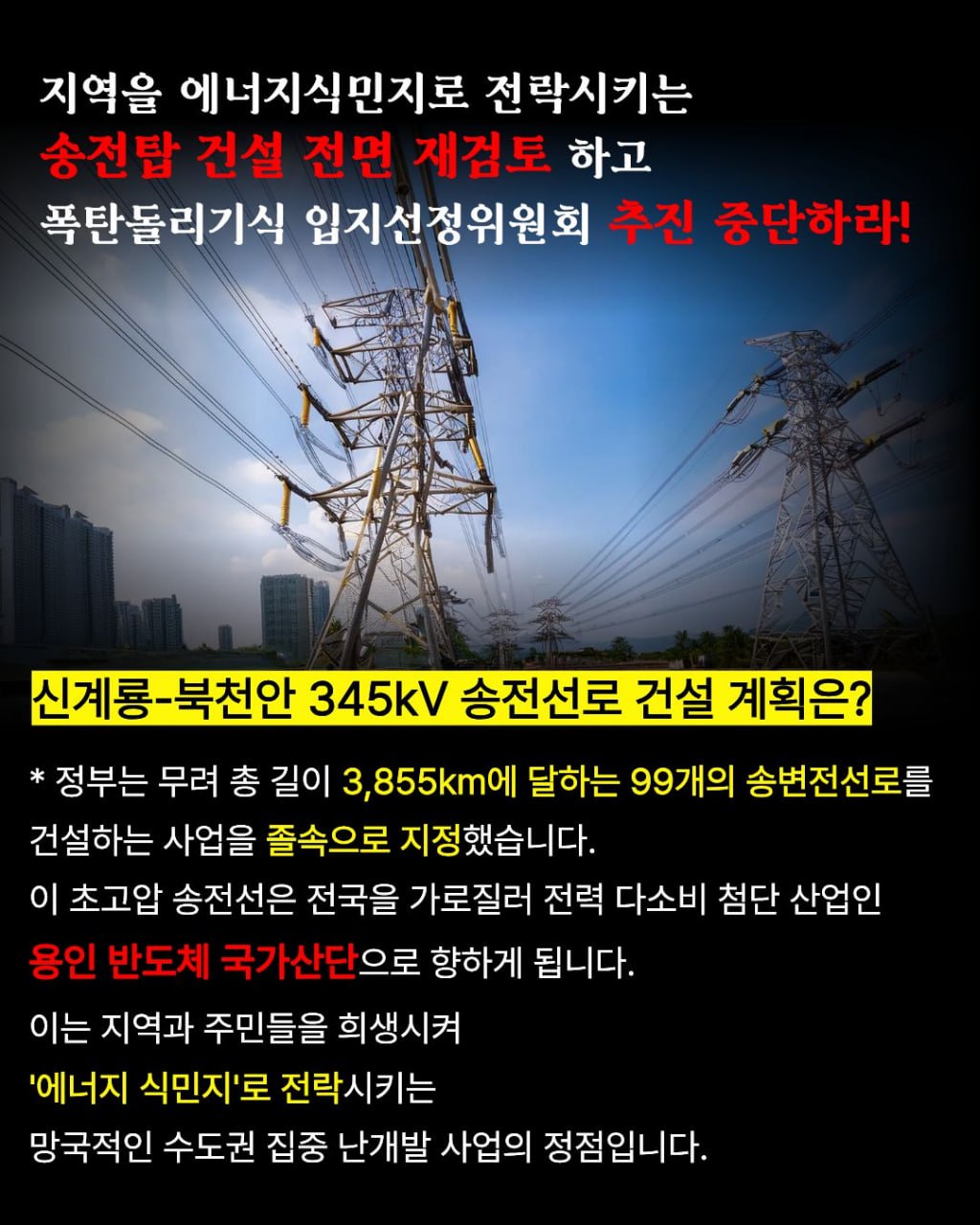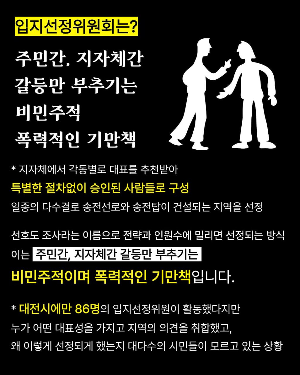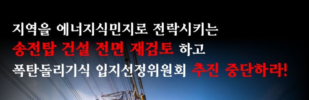 지역을 에너지식민지로 전락시키는 송전탑 건설 전면 재검토하고 폭탄 돌리기 식 입지선정위원회 추진 중단하라!