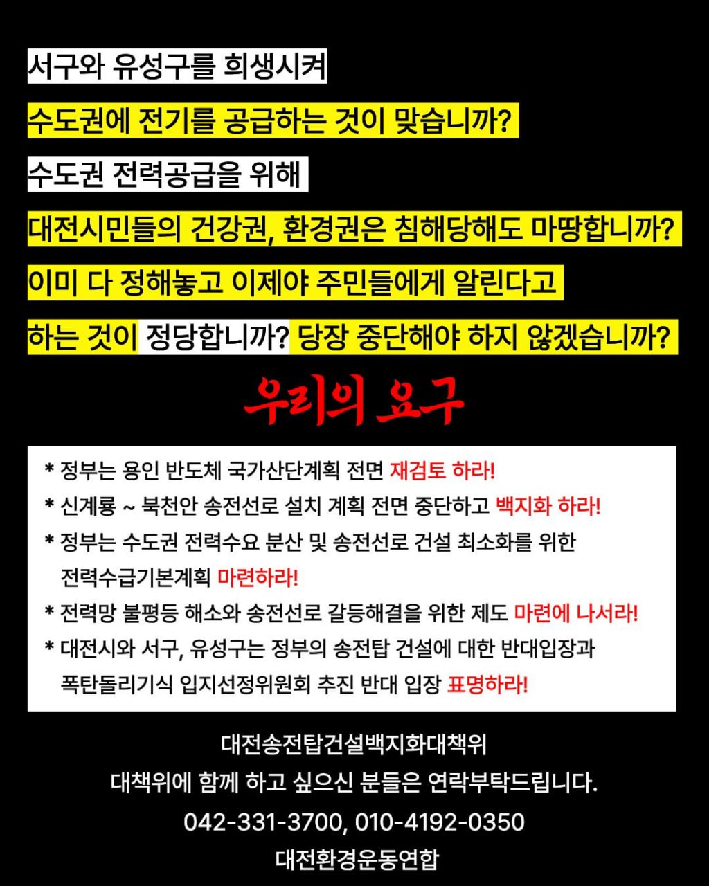 ✅대전열병합발전 증설 반대 서명에 함께해주세요!!