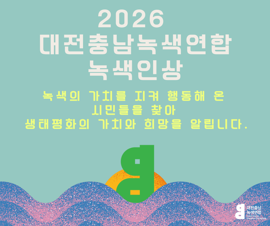 대전충남녹색연합은 ‘2026 녹색인상’을 통해 지난 2025년 환경과 녹색의 가치를 위한 활동에 기여한 후보들을 발굴, 시민들에게 생태평화의 가치와 희망을 알리고자 합니다.