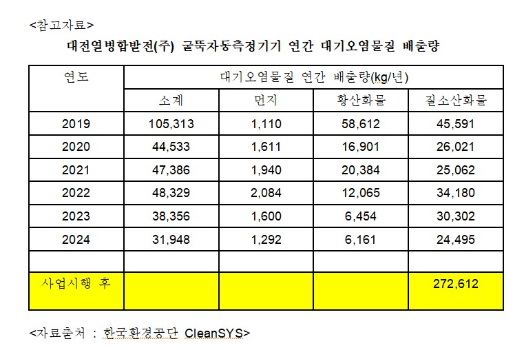 질소산화물의 경우도 연료전환에 따라 강화된 법적 기준을 따른다고 하나 여전히 비교치는 당초 법적 기준에 머무르고 있다. 연간 27만kg은 2024년 질소산화물 배출량 24,495kg과 비교할 때 10배가 증가한다는 주민의견에 대해서는 무성의하게 같은 답으로 일관하고 있다.