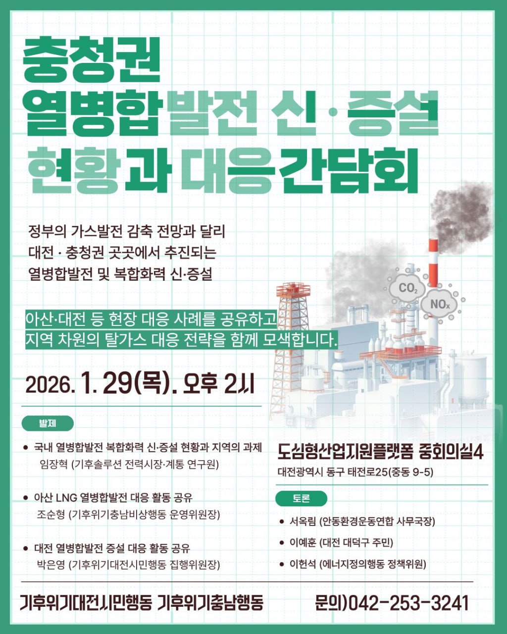아산·대전 열병합발전소 신증설을 둘러싼 현장의 대응과 고민을 함께 나눕니다.