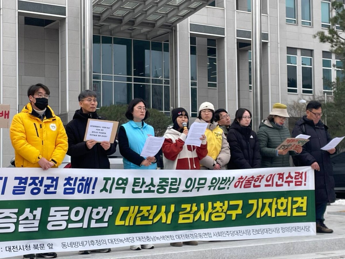 이에 대전열병합증설을 반대하는 시민, 단체들은 대전시의 대전광역시 시민참여 기본조례 위반, 기후위기 대응을 위한 탄소중립ㆍ녹색성장 기본법 위반을 이유로 감사원에 대전시에 대한 공익감사를 청구한다. 기후위기 시대에 지방정부가 마땅히 이행해야 할 환경 보전 및 탄소중립 정책에 정면으로 역행하고 대전시민의 환경권을 심각하게 침해하는 대전열병합발전 증설은 즉각 중단되어야 한다. 이에 대한 책임과 의무를 모두 방기한 대전시는 이제라도 대전시민들의 목소리를 듣고 증설에 대한 입장을 재고해야 할 것이다. 대전시민들은 기후위기로부터 안전한 지역사회를 원한다.