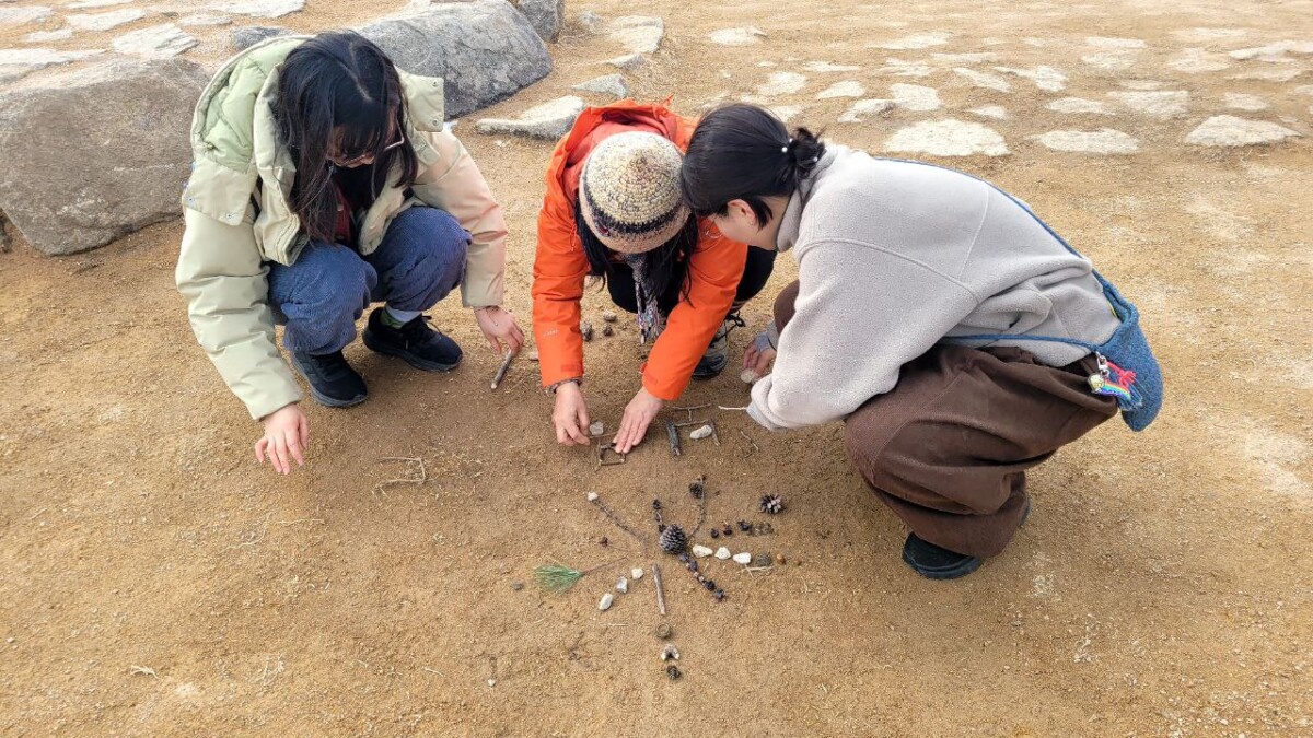 보문산성에 올라서 각자 걸으면서 얻은 자연물들로 만다라를 만들어 ‘보문산 이대로’ 염원을 드렸답니다. 이대로, 변하지 말고 부서지지 말고, 이곳의 생명 터전인 모두에게 삶터와 쉼터가 되기를 기도했어요.