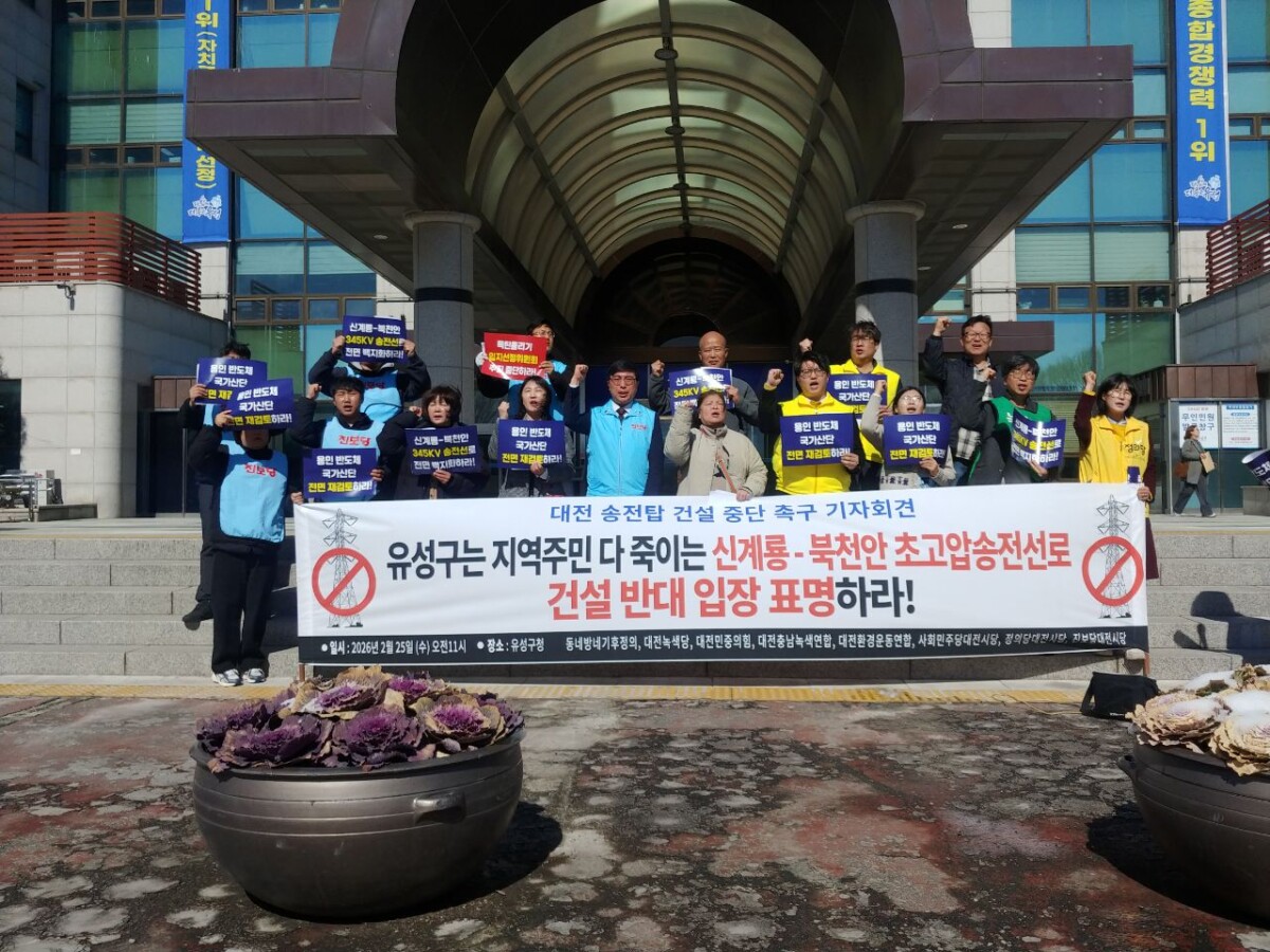 주민도 모르고 주민 동의도 없이 추진되는 고압송전탑 건설에 유성구청은 반대입장을 분명히 해야 한다.