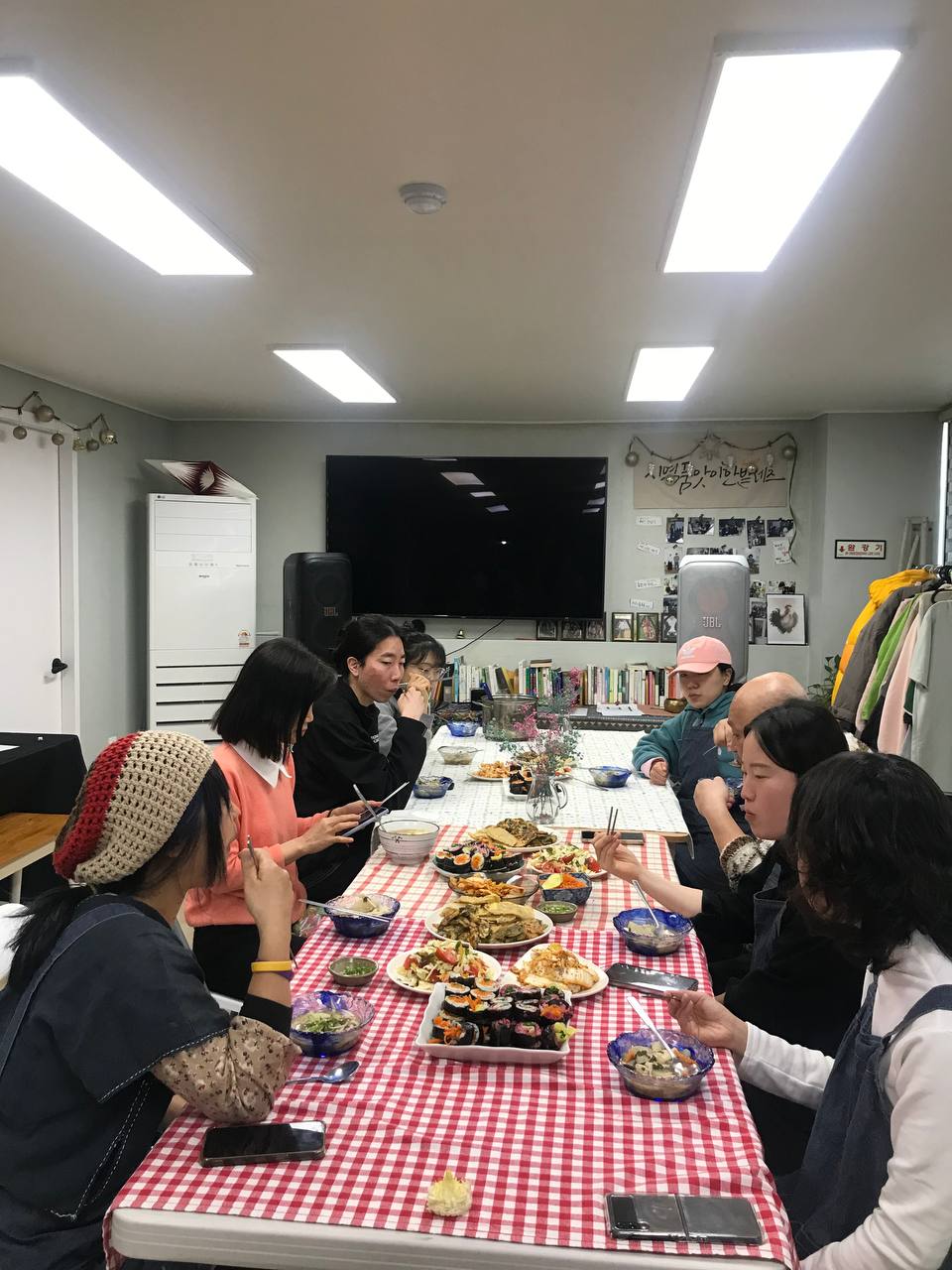 오전 10시 반에 만나 요리를 하고 식사를 하고, 이야기를 나누다 보면 어느덧 4시간이 훌쩍인 회원동아리예요.