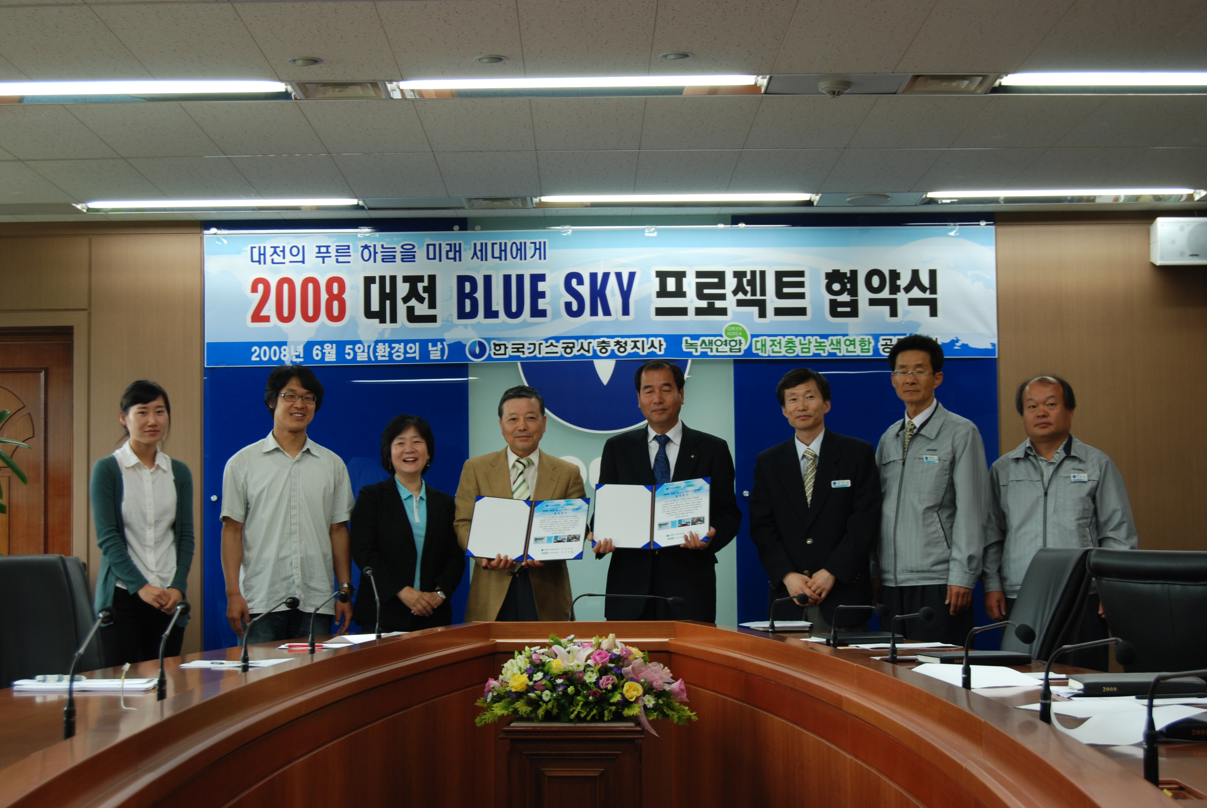 2008년 블루스카이 프로젝트 협약식이 오늘 6월 4일(환경의 날) 가스공사 충청지사에서 있었습니다. 한국가스공사 충청지사 손범영 지사장, 대전충남녹색연합 이상덕 공동대표 등이 참석 했습니다.